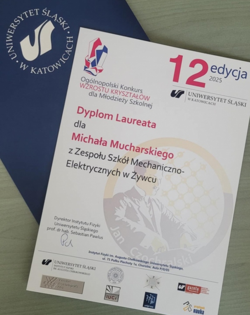 Michał Murański, uczeń ZSME, zdobył wyróżnienie w prestiżowej, 12 edycji Ogólnopolskiego Konkursu Wzrostu Kryształów organizowanego przez Uniwersytet Śląski w Katowicach. Konkurs ten cieszy się dużym uznaniem wśród młodych pasjonatów nauki, a jego celem jest popularyzacja wiedzy z zakresu fizyki i chemii oraz rozwijanie umiejętności eksperymentalnych.