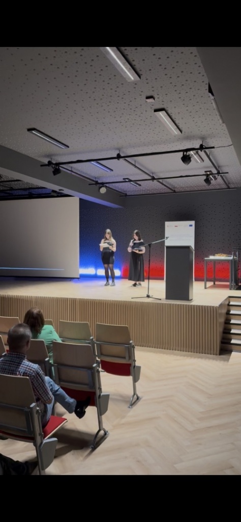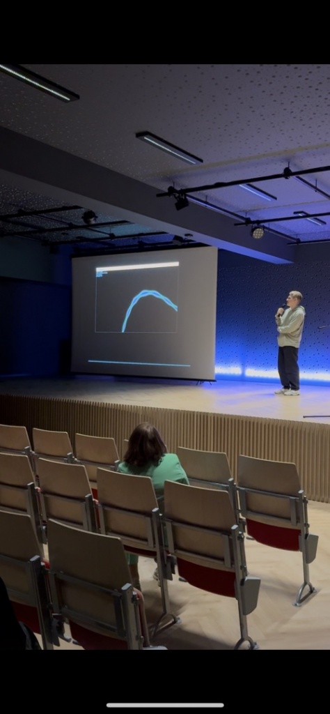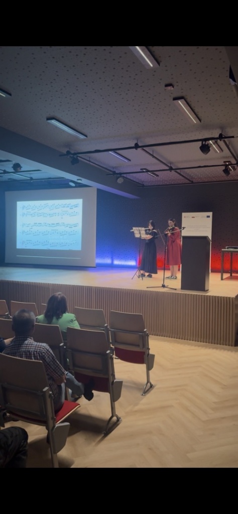 Joanna Suchoń, Natalia Suchonek (3cT) oraz Marlena Gibas (2aLO) wprowadziły nas w świat muzyki. Mogliśmy dowiedzieć się, jakie są wspólne cechy matematyki i muzyki oraz zobaczyć, w jaki sposób te dwie dziedziny się ze sobą łączą. W pięknych brzmieniach skrzypiec (Marlena Gibas) oraz fletu poprzecznego (Natalia Suchonek) mogliśmy posłuchać niezwykle miłego dla ucha utworu Canon in D skomponowanego dawno temu przez Pachelbela, w którym częstotliwości dźwięków mają złotą proporcję.