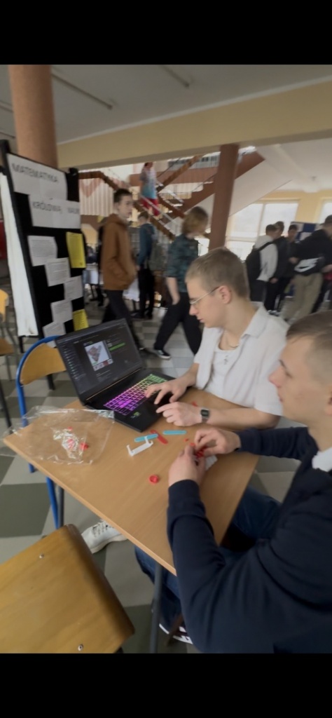 Niewątpliwymi atrakcjami dla wszystkich były: robot układający kostkę Rubika oraz pokaz hologramu w wykonaniu Dominika Zuziaka (4cT).