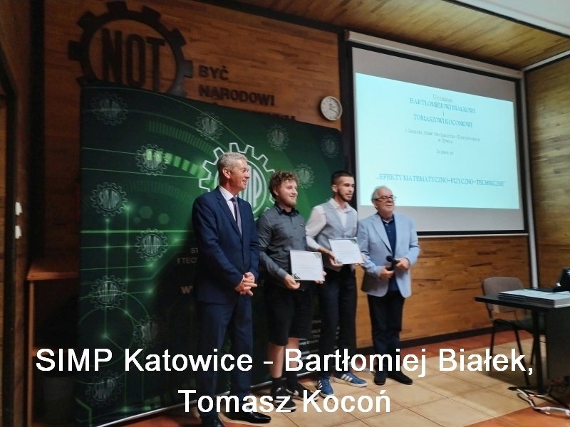 Ogólnopolskiej Olimpiadzie „Elektromechatron” – Finalista Wojciech Zwardoń Konkursie SIMP w Katowicach – 1 miejsce Mateusz Gołuch nagroda główna 6000 zł.