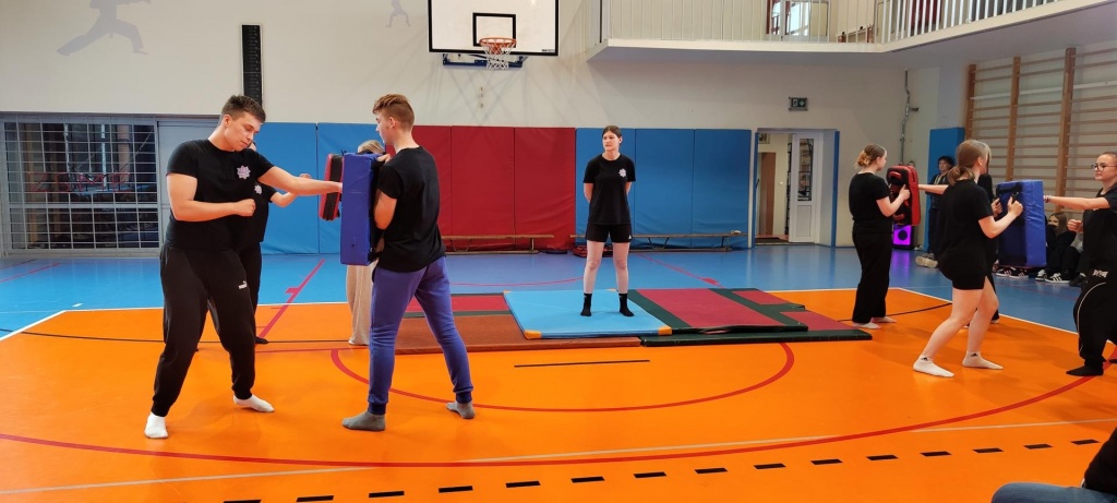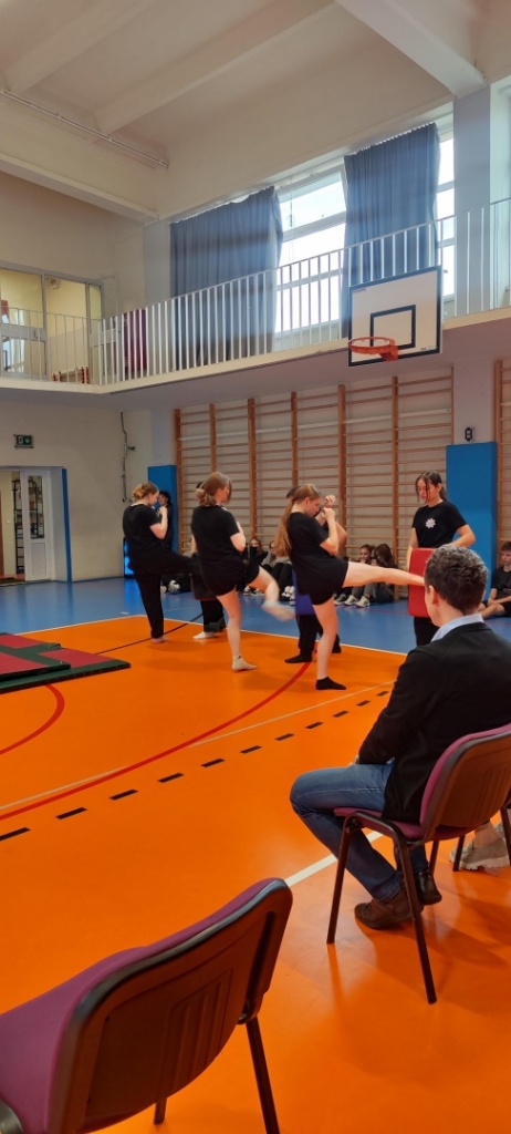 Uczniowie naszej szkoły zaprezentowali rzuty, pady, chwyty, dźwignie, uderzenia, trzymania zaczerpnięte z judo, karate, boksu, brazylijskiego jiu jitsu i samoobrony. Wszystkie układy zrobiły niesamowite wrażenie na każdym, kto oglądał pokaz. Wyżej wymienione techniki oraz pokaz mogły przybliżyć specyfikę zajęć sztuk walki w klasach policyjnych.
