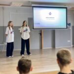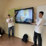 Podczas spotkań dwie anglistki – pani Alicja Goliszewska i pani Iwona Noga-Bardyńska – wraz z czwórką naszych uczniów: uczennicami klasy 3a LO- Kingą i Wiktorią oraz uczniami technikum z klas o profilu mechatronicznym – Dominikiem i Mikołajem, zaprezentowały bogaty wachlarz kierunków kształcenia dostępnych w ZSME.