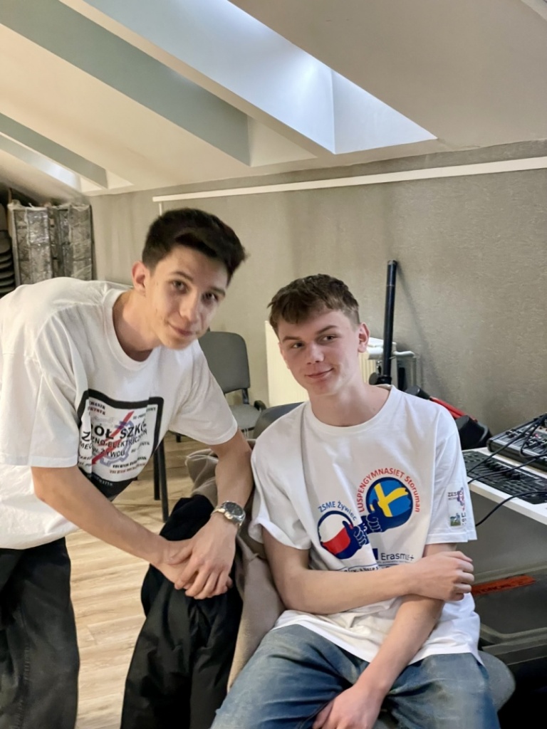 Podczas spotkań dwie anglistki – pani Alicja Goliszewska i pani Iwona Noga-Bardyńska – wraz z czwórką naszych uczniów: uczennicami klasy 3a LO- Kingą i Wiktorią oraz uczniami technikum z klas o profilu mechatronicznym – Dominikiem i Mikołajem, zaprezentowały bogaty wachlarz kierunków kształcenia dostępnych w ZSME.